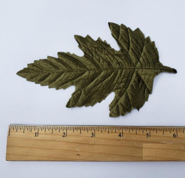 Leaf #31. This leaf can be custom made in any fabric you provide! Possible fabrics include Silk, Leather, Velvet, etc. This sample is made in Velvet.